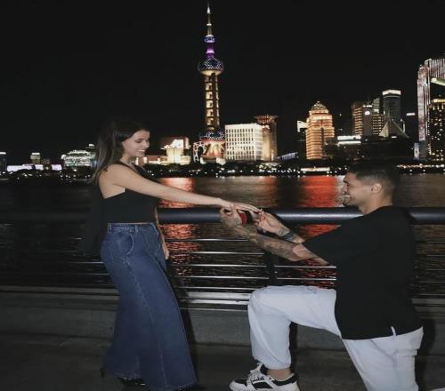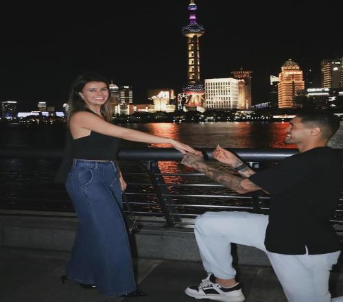 有情人终成眷属!昨晚,评估身价200万欧元的西海岸后防中坚里切利在流光溢彩的黄浦江畔,向自己的女友娜塔莉亚·吉梅内斯求婚成功,美艳动人的后者正式升级为里切利的未婚妻。